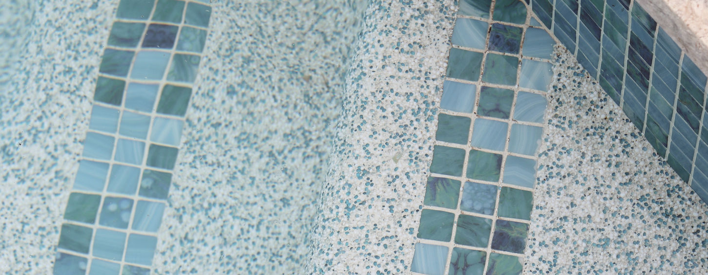 The focal point is the elegant mosaic tilework that lines the interior, featuring a blend of deep sea greens and blues.